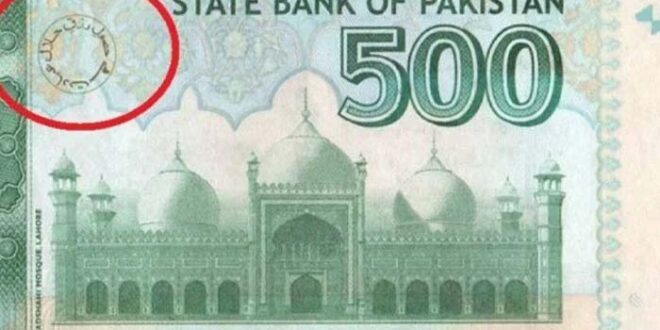 اسٹیٹ بینک آف پاکستان (ایس بی پی) کے ایک عہدیدار نے نام ظاہر نہ کرنے کی شرط پر ’جیو نیوز‘ کو بتایا کہ مرکزی بینک کی ویب سائٹ پر ہر کرنسی نوٹ کے پیچھے موجود سیکیورٹی فیچرز میں یہ عبارت درج ہے۔