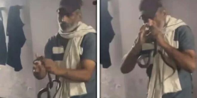 بھارتی میڈیا رپورٹس کے مطابق سانپ کو قابو کرتے ہوئے اچانک کوبرا نے اِس کے ہاتھ پر کاٹ لیا تھا۔