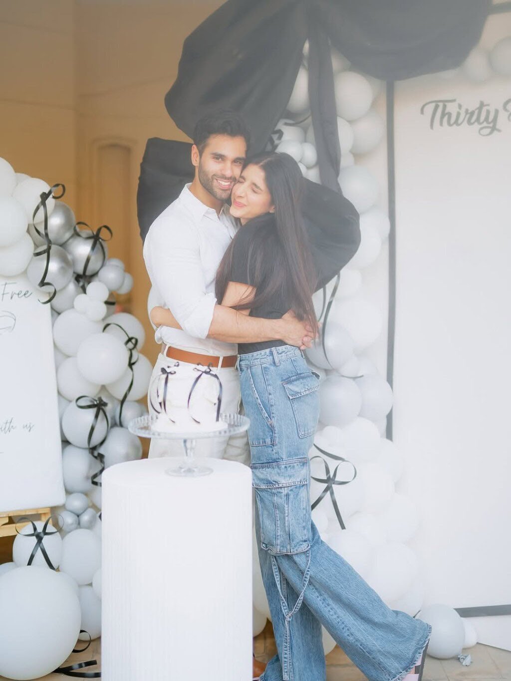 سالگرہ کے موقع پر ماورا حسین نے جینز کے ساتھ بلیک ٹی شرٹ زیب تن کی اور شوہر عامر گیلانی کے ساتھ رومانوی انداز میں تصاویر بنوائیں۔