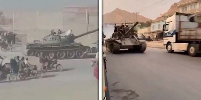 اس کے علاوہ سوشل میڈیا پر ایک اور ویڈیو بھی وائرل ہو رہی ہے جس میں متعدد ٹینک سفید جھنڈا تھامے دکھائی دے رہے ہیں اور کہا جا رہا ہے کہ افغان فورسز پاکستان پر حملہ کرنے کے لیے جا رہے ہیں۔