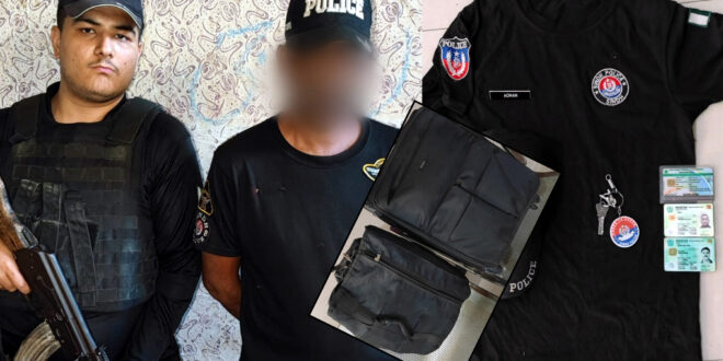 ملزم سے پولیس ٹی شرٹ، پولیس کیپ، پولیس کی چین, نیم پلیٹ, دو بیگ اور دیگر سامان برآمد،ایس ایس پی سٹی