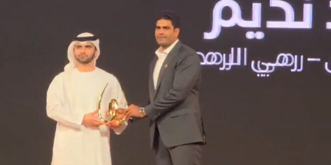پاکستان کے اولمپک جیولین تھرو گولڈ میڈلسٹ ارشد ندیم نے شیخ محمد بن راشد ایوارڈ وصول کرلیا۔