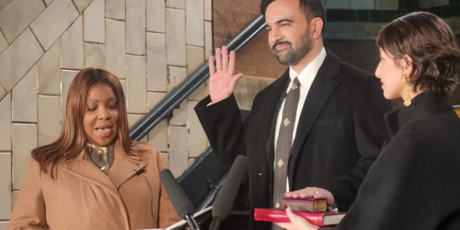اٹارنی جنرل نیویارک لیٹیا جیم نے زہران ممدانی سے ان کے عہدے کا حلف لیا۔ اس موقع پر زہران ممدانی کی اہلیہ بھی موجود تھیں۔