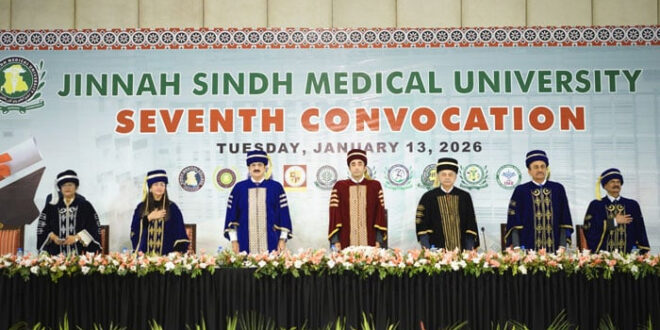 انھوں نے کہا فارغ التحصیل طلبہ نے صرف ادویات ہی نہیں بلکہ موسمیاتی تبدیلی، ذہنی صحت اور دیگر اہم شعبوں کے بارے میں بھی تعلیم حاصل کی ہے جو موجودہ دور کی بنیادی ضرورت ہے۔ جناح سندھ میڈیکل یونیورسٹی ایک طاقتور نام کی حامل درسگاہ ہے جس کا تعلق بانی پاکستان قائداعظم محمد علی جناح سے جڑا ہوا ہے اور اس نام کے ساتھ نظم و ضبط اور ذمہ داری بھی وابستہ ہے۔