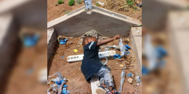 ماں کی یاد میں بےچین بچے کی والدہ کی قبر پر سوتے ہوئے تصویر نے دل دہلادیے