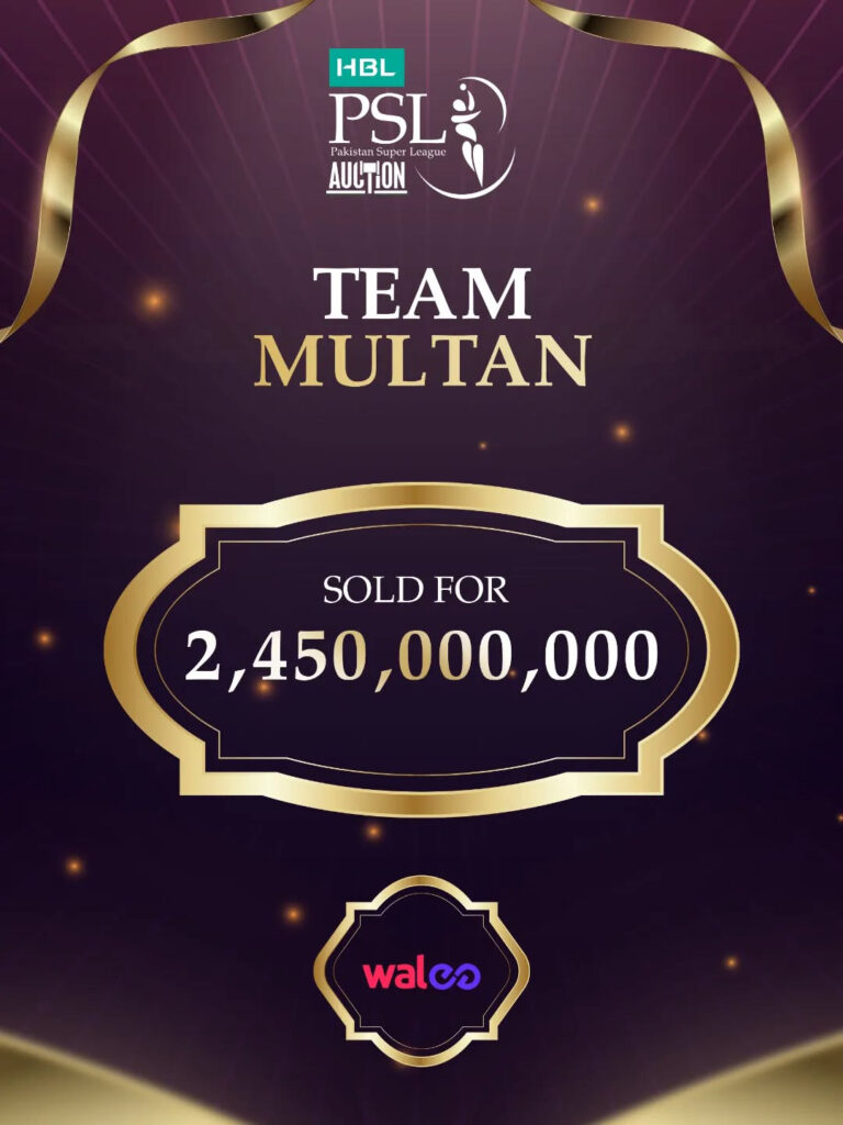 سی ڈی وینچرز کی جانب سے سوچ بچار کے لیے وقت مانگا گیا تاہم اسٹریٹیجک ٹائم آؤٹ مکمل ہونے کے بعد مزید بولی نہیں لگائی، اس طرح ولی ٹیکنالوجیز نے اگلے دس سال کے لیے ملتان سلطانز کے ملکیتی حقوق حاصل کرلیے ہیں۔