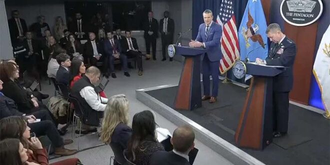 امریکی وزیر جنگ پیٹ ہیگسیتھ اور امریکی جنرل ڈین کین نے میڈیا بریفنگ کے دوران کہا کہ ایران تنہا کھڑا ہے اور بری طرح سے ہار رہا ہے، ہمارے اہداف یہ ہیں کہ میزائل اور دفاعی صنعتی مراکز کو تباہ کیا جائے۔