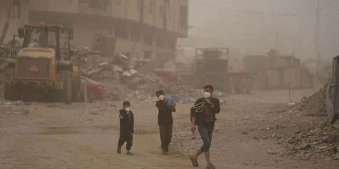غزہ میں ریت کے طوفان سے اسرائیلی جنگ سے تباہ حال فلسطینیوں کی مشکلات بڑھ گئیں۔