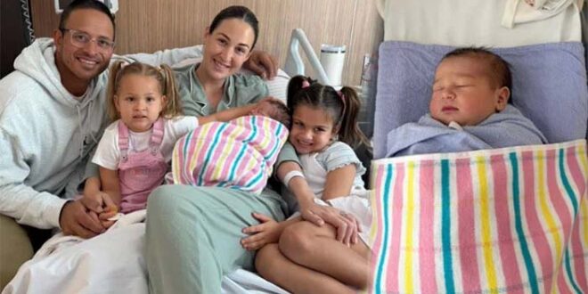 عثمان خواجہ نے نومولود کے ساتھ خاندان کی تصویر بھی شیئر کی اور لکھا کہ ’ہم بہت شکر گزار ہیں کہ ایک اور خوبصورت لڑکی پیدا ہوئی ہے، مکمل ٹیم کے لیے ابھی 8 مزید باقی ہیں‘۔