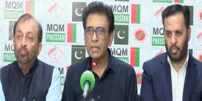 چیرمین ایم کیو ایم پاکستان خالد مقبول صدیقی نے مصطفیٰ کمال، امین الحق، انیس قائم خانی کے ہمراہ پریس کانفرنس کرتے ہوئے کہا ہے کہ جس جنگ کا پچھلے تیس چالیس سال سے کہا جارہا تھا وہ جنگ ہمارے دروازے پر پہنچ چکی ہے، جنگ کے خاتمے کے لیے پاکستان کی حکومت اور پاک افواج نے نمایاں کردار ادا کیا ہے۔