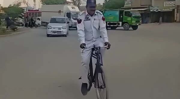 تفصیلات کے مطابق Karachi میں بڑھتی ہوئی پیٹرول کی قیمتوں نے جہاں عام شہریوں کو متاثر کیا ہے، وہیں قانون نافذ کرنے والے اداروں کے اہلکار بھی اس سے متاثر ہوئے ہیں۔ اسی تناظر میں ایک ٹریفک پولیس اہلکار نے متبادل سفری ذریعہ اختیار کرتے ہوئے سائیکل پر ڈیوٹی پر آنا شروع کر دیا۔